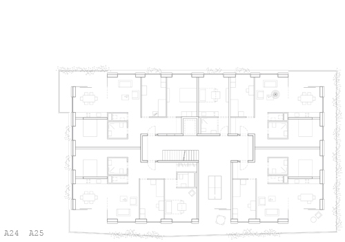 Les typologies des appartements et leurs prolongements extérieurs s'organisent en fonction de l'orientation. De larges balcons végétalisés courent le long des façades bien orientées, s'ouvrant vers la lumière, tout en protégeant la façade du soleil estival.